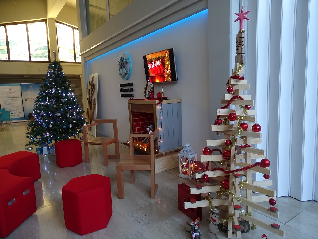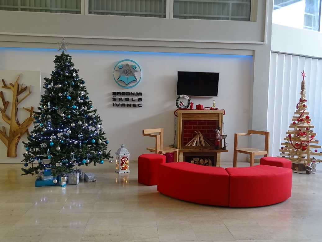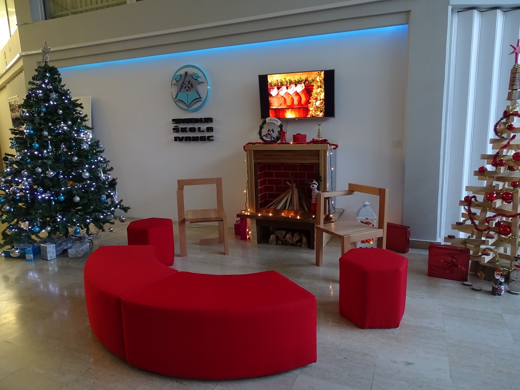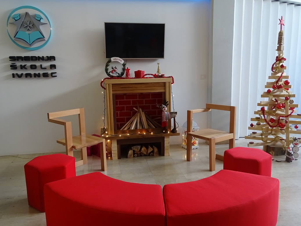 Čarolija nadolazećih blagdana u našoj je školi već započela! Uz pomoć vijeća učenika okićen je bor, a zahvaljujući učenicima stolarskog usmjerenja i njihovom majstoru Tomici Sankoviću toplini i ugođaju doprinose i njihovi radovi - eko borić te prekrasan kamin uz koji učenici mogu sjesti i fotografirati se.
