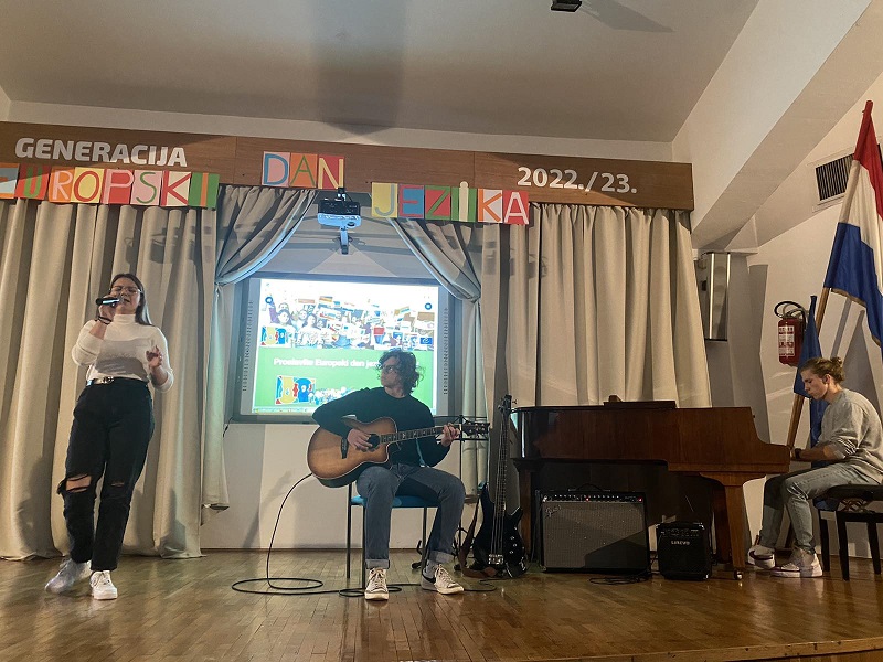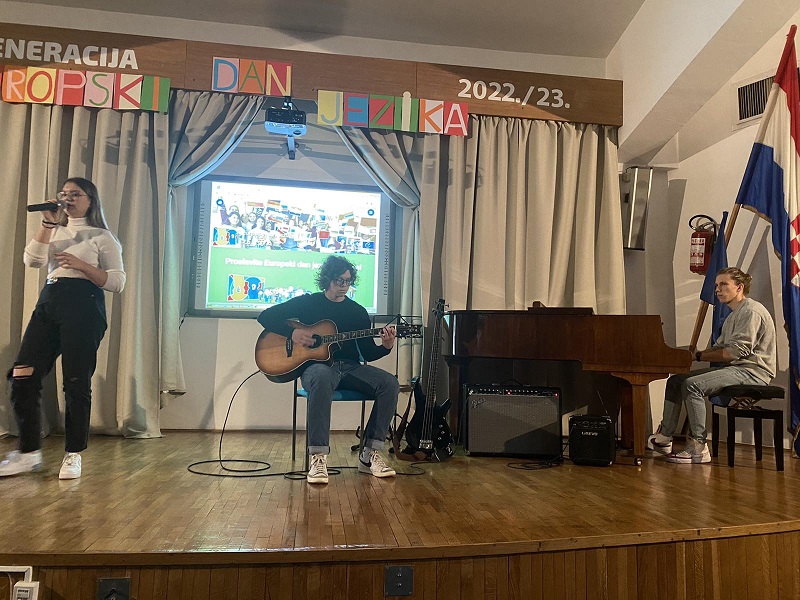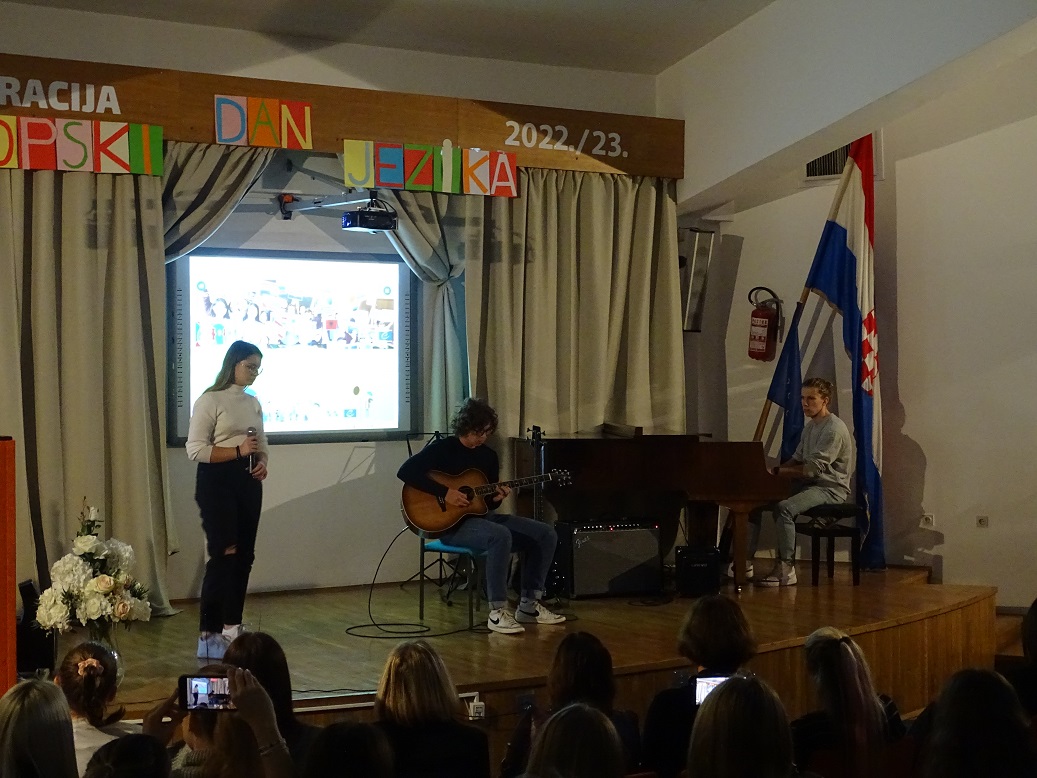 Kasnije su učenici Tin Petrinjak na gitari, Robert Blum na klaviru i Ivana Kos, vokal, izveli pjesmu Layla (Eric Clapton) kako bi ukazali na važnost učenja jezika i kroz glazbu.