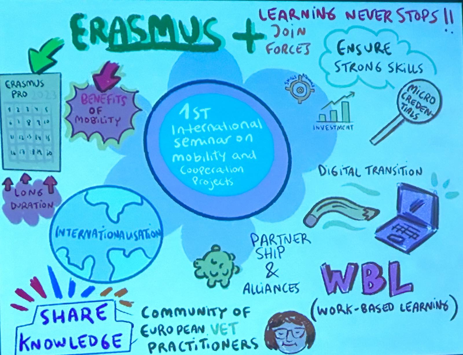 Nakon institucionalne dobrodošlice, održana su predavanja o politikama strukovnog obrazovanja i osposobljavanja te internacionalizaciji kroz Erasmus+ program i mogućnostima uključivanja u „Pakt za vještine“ kroz razvoj alata, znanja i suradnje za podršku usavršavanju i prekvalificiranju diljem EU-a pri čemu je istaknuta važnost 2023. kao Europske godine vještina, a preporuke su išle u smjeru da cijela organizacija bude uključena u projektni prijedlog Erasmus+ te da udruže snage kako bi izgradili partnerstva s javnim tijelima i akterima na tržištu rada.