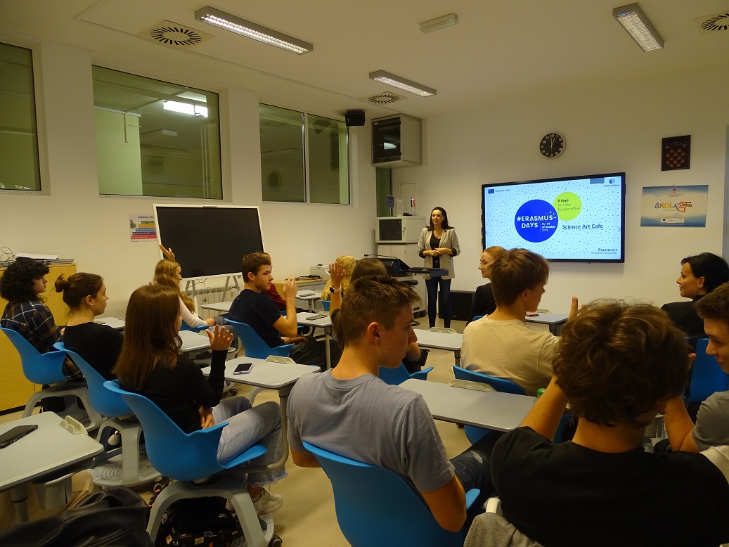 Stoga je u školi održan „Science Art Cafe“, kao jedna od planiranih aktivnosti navedenog projekta. Cilj aktivnosti je bio upoznati sve zainteresirane sudionike sa samim projektom i njegovim rezultatima, o čemu je govorila ravnateljica škole mr. sc. Lidija Kozina. Jedan od rezultata projekta koji je kreiran je pedagoška „E-knjiga za STEM izložbe“, čije su sadržaje predstavile pedagoginja Anja Rutić i nastavnica Ana Čelik. Predavanjem se pobliže objasnilo kako se uvođenjem umjetničkih izložbi učenika i korištenjem nove pedagoške metodologije može utjecati na unapređenje učenja i poučavanja STEM predmeta u srednjoškolskom obrazovanju.