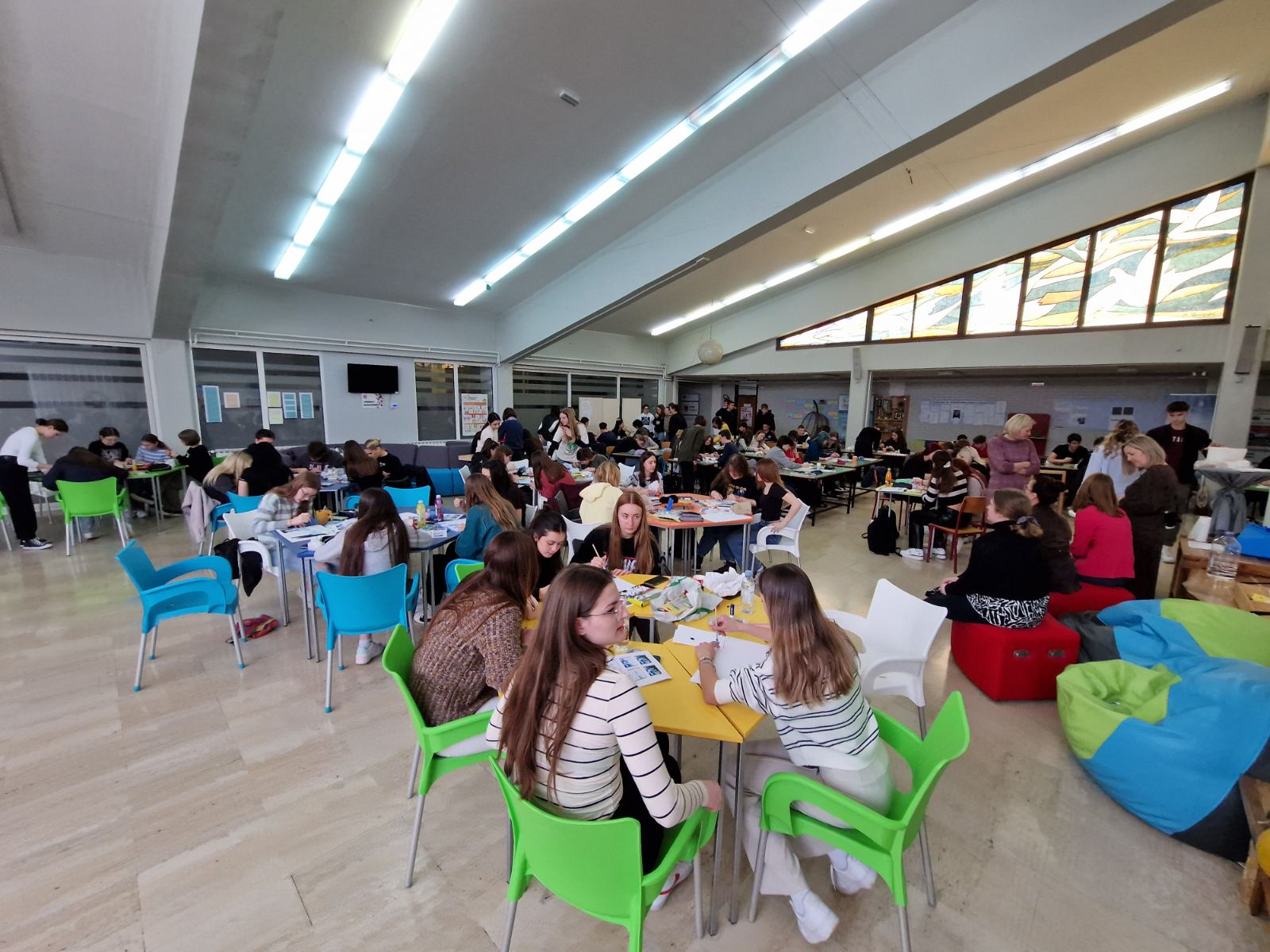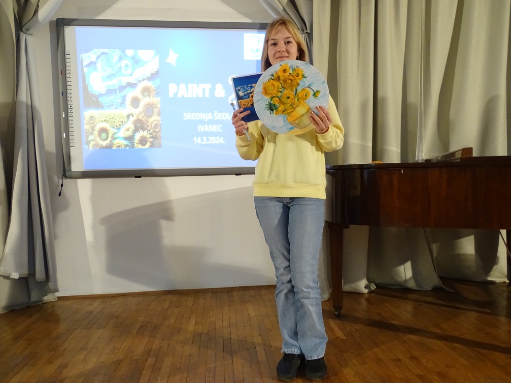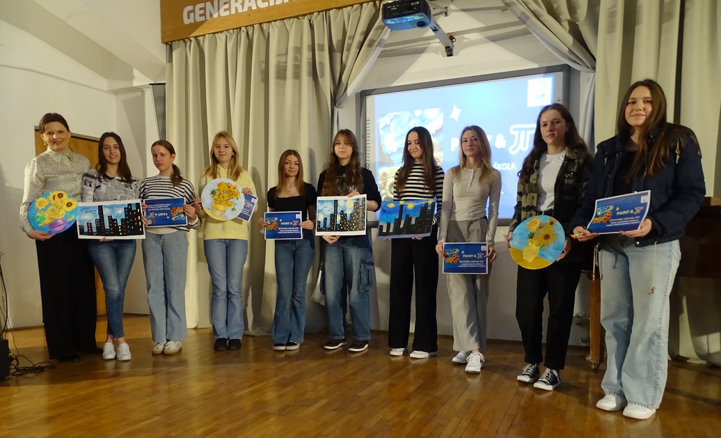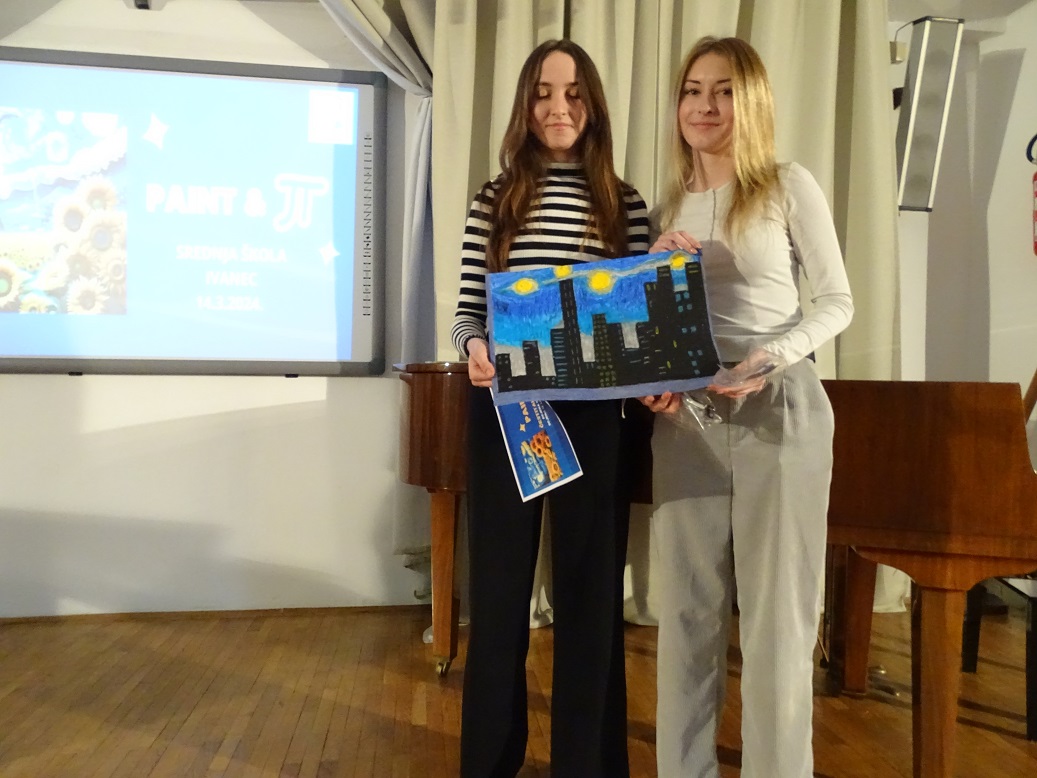 U četvrtak 14.3. u našoj je školi u potpunosti vladao duh umjetnosti i matematike. Na nešto drugačiji, opušteniji i kreativniji način učenici naše škole proslavili su sa svojim nastavnicama matematike Svjetski dan matematike i Dan broja π. Sve je počelo u 10:00 sati u amfiteatru škole gdje se okupilo 80-tak prijavljenih učenika zainteresiranih za sudjelovanje u radionici PAINT&π . Učenici su prvo pogledali zanimljiv i edukativan video o Vincentu van Goghu i njegovim poznatim umjetničkim dijelima u kojima pronalazimo korelaciju s matematikom i fizikom. Osim toga, učenici su pogledali i zanimljiv dijalog između Vincenta van Gogha i broja π kojega su osmislile i izradile učenice 1.G razreda, Lea Križanec i Lukrecija Hojsak. Malo je reći da smo uz njihov video iskreno uživali i nasmijali se. Nakon prikazanih videa, učenici su odigrali Kahoot kviz koji se nadovezao na video učenica, a najbrže i najtočnije u odgovorima bile učenice Sara i Petra Bednjički iz 1.G razreda.