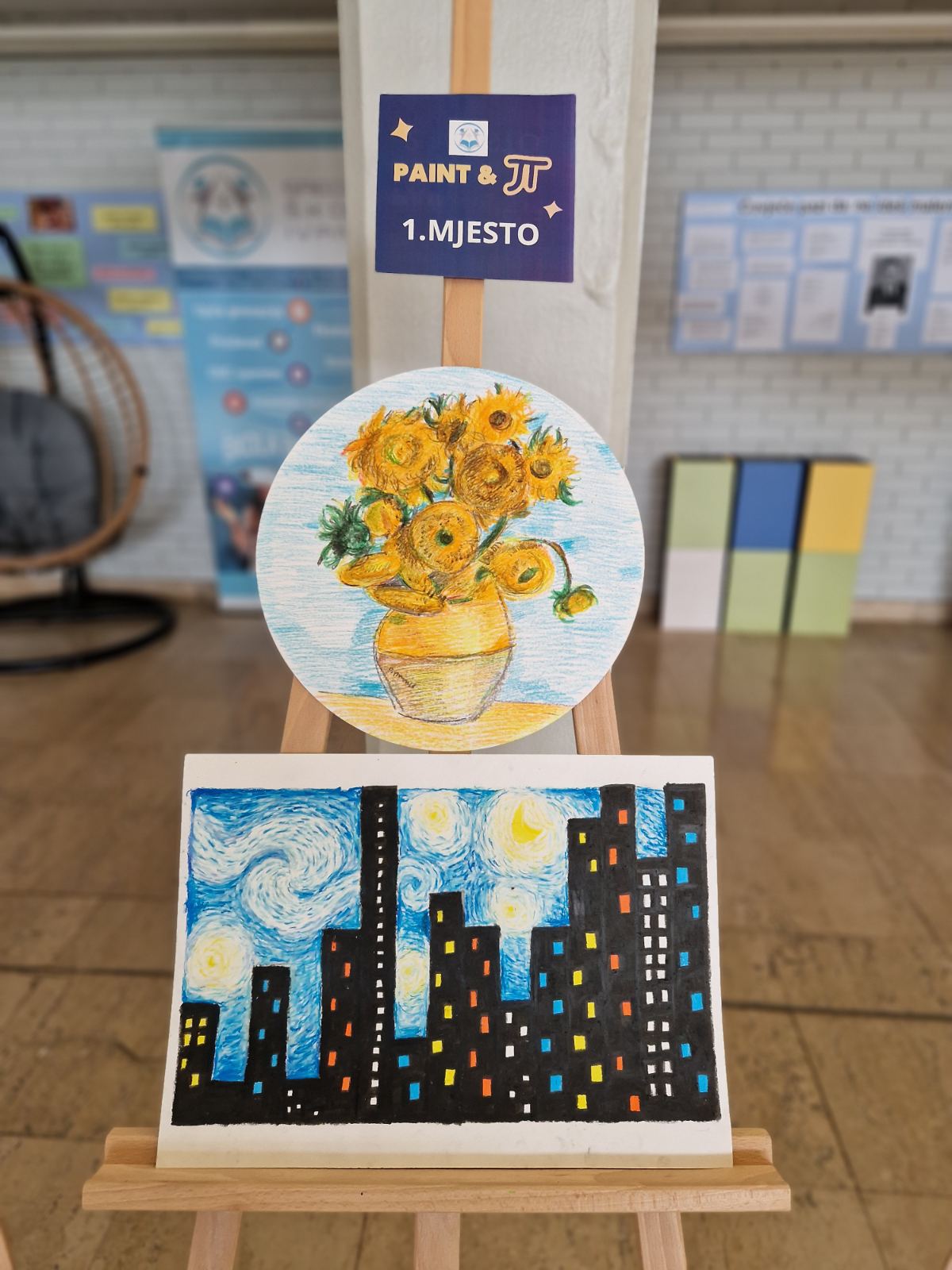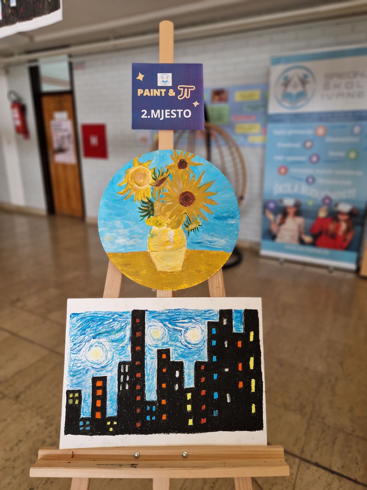Nakon uvodnog dijela, učenici su se udobno smjestili u holu škole, pripremili tempere i voštane boje te počeli s crtanjem. Mogli su birati između van Goghovih djela Zvjezdana noć, za koji su dobili konkretne upute kako pristupiti crtanju korak po korak ili djela Suncokreti za koji su imali potpunu slobodu crtanja. Prevladavalo je crtanje Zvjezdane noći. Redoslijed crnih zgrada na slici koje su se pronašle u prednjem planu, predstavljale su zapravo prvih 14 decimala broja π, a u pozadini su se pronašli razni kružni i vrtložni oblici.