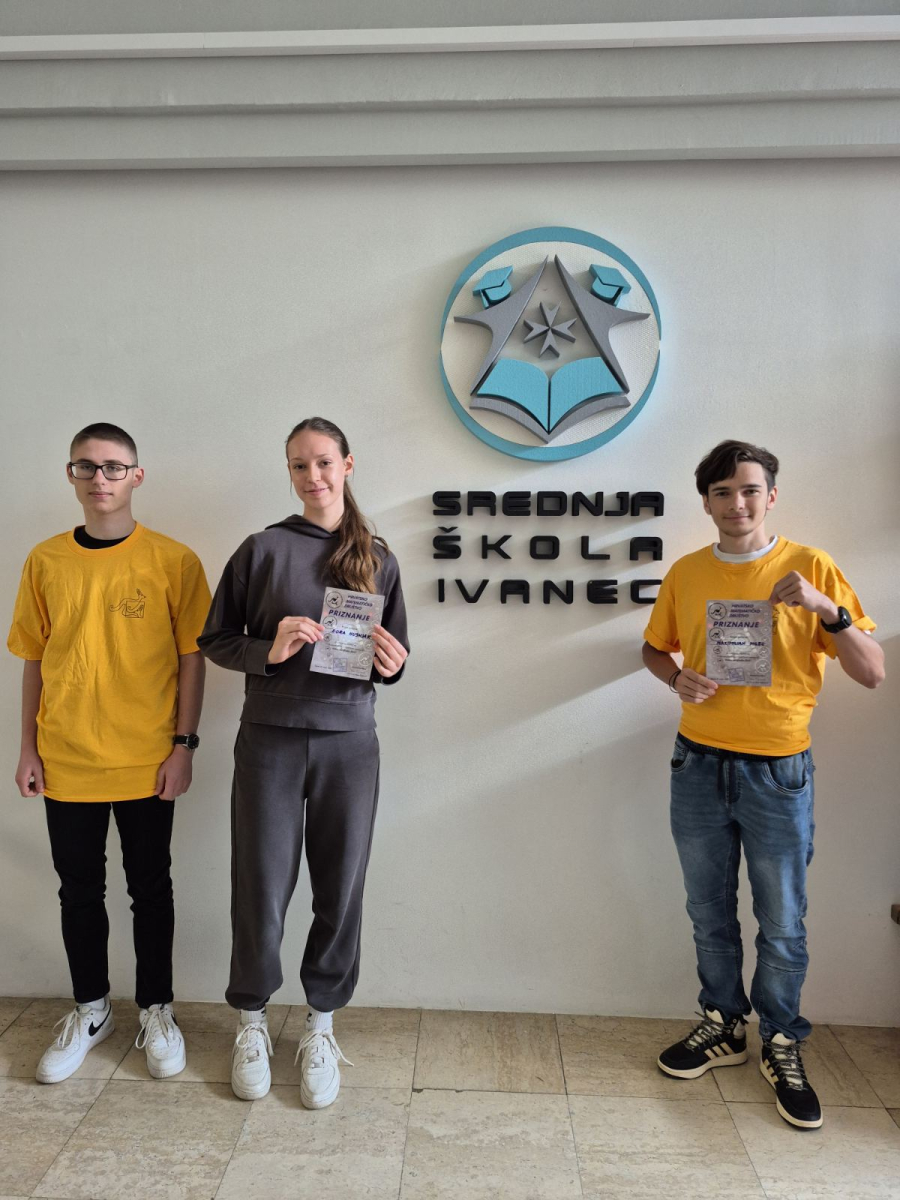 U kategoriji Cadeta (8. razred + 1. razred srednje škole) posebno su se istaknuli među 10% najboljih učenici 1.G2 razreda Matej Petak i Dora Husnjak.