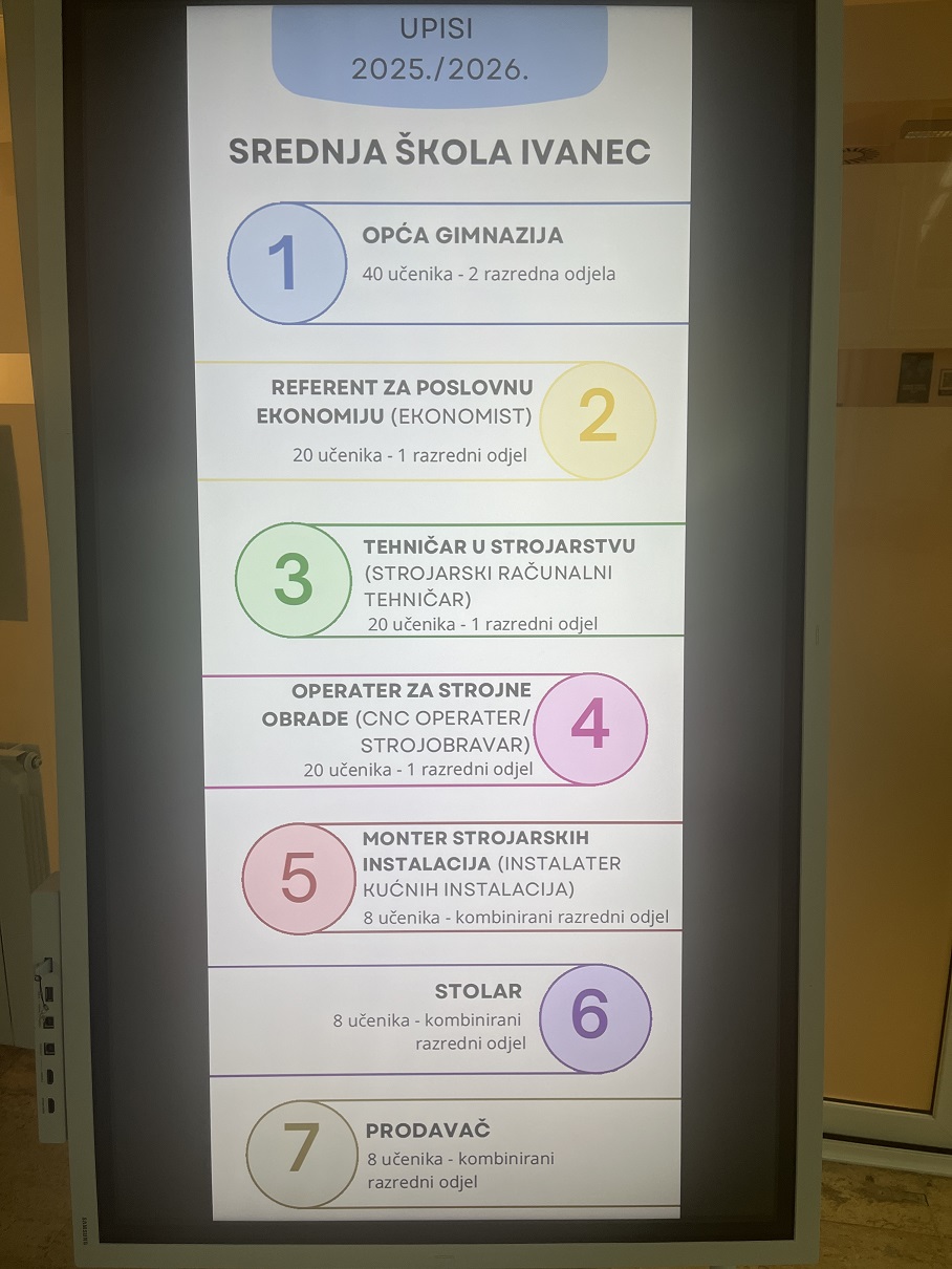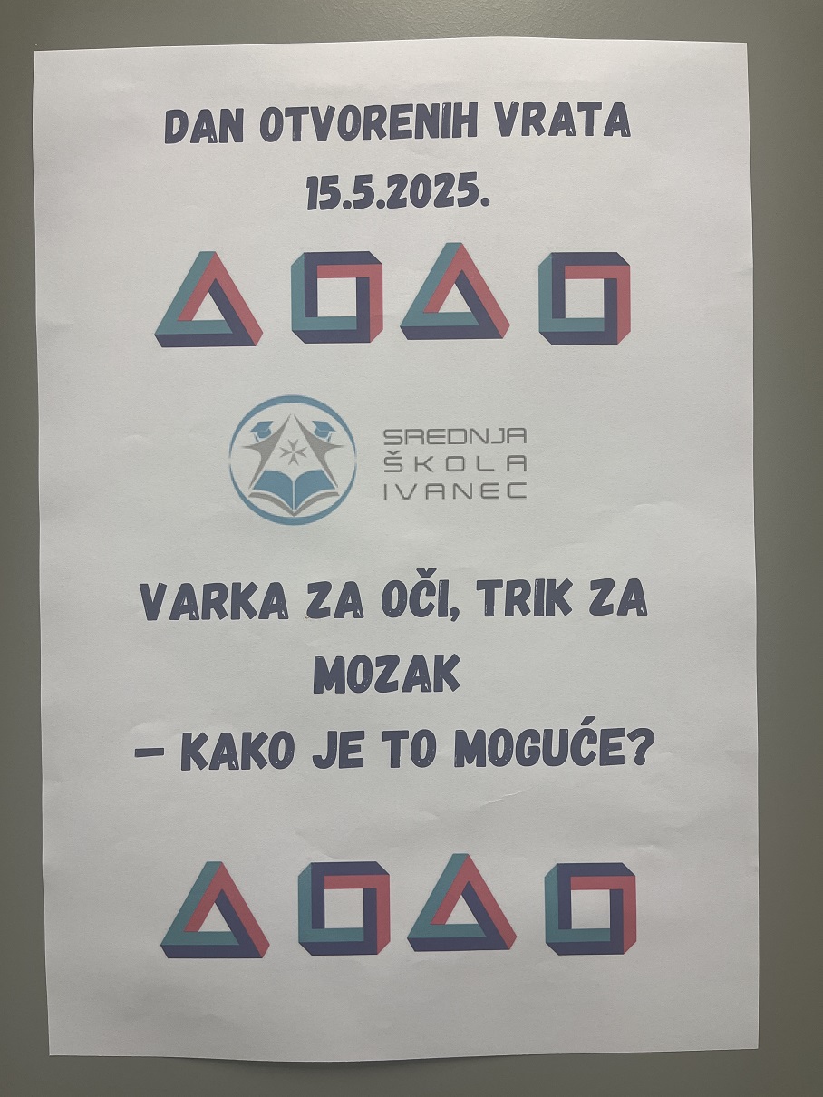 Srednja škola Ivanec otvorila je 15. svibnja svoja vrata svim zainteresiranim osmašima i njihovim roditeljima. Budući srednjoškolci i njihovi roditelji mogli su dobiti informacije o smjerovima koji će se u Srednjoj školi Ivanec moći upisati u nadolazećoj školskoj godini, razgledati školu te sudjelovati na nekim od zanimljivih i interaktivnih radionica. Zahvaljujući entuzijazmu naših nastavnika i učenika, kao i pozitivnim povratnim informacijama naših gostiju, veselo i pozitivno ozračje osjetilo se u svakom kutku škole. Vjerujemo da su budući srednjoškolci i njihovi roditelji iz Škole otišli zadovoljni, puni novih i korisnih informacija te pozitivnih utisaka.