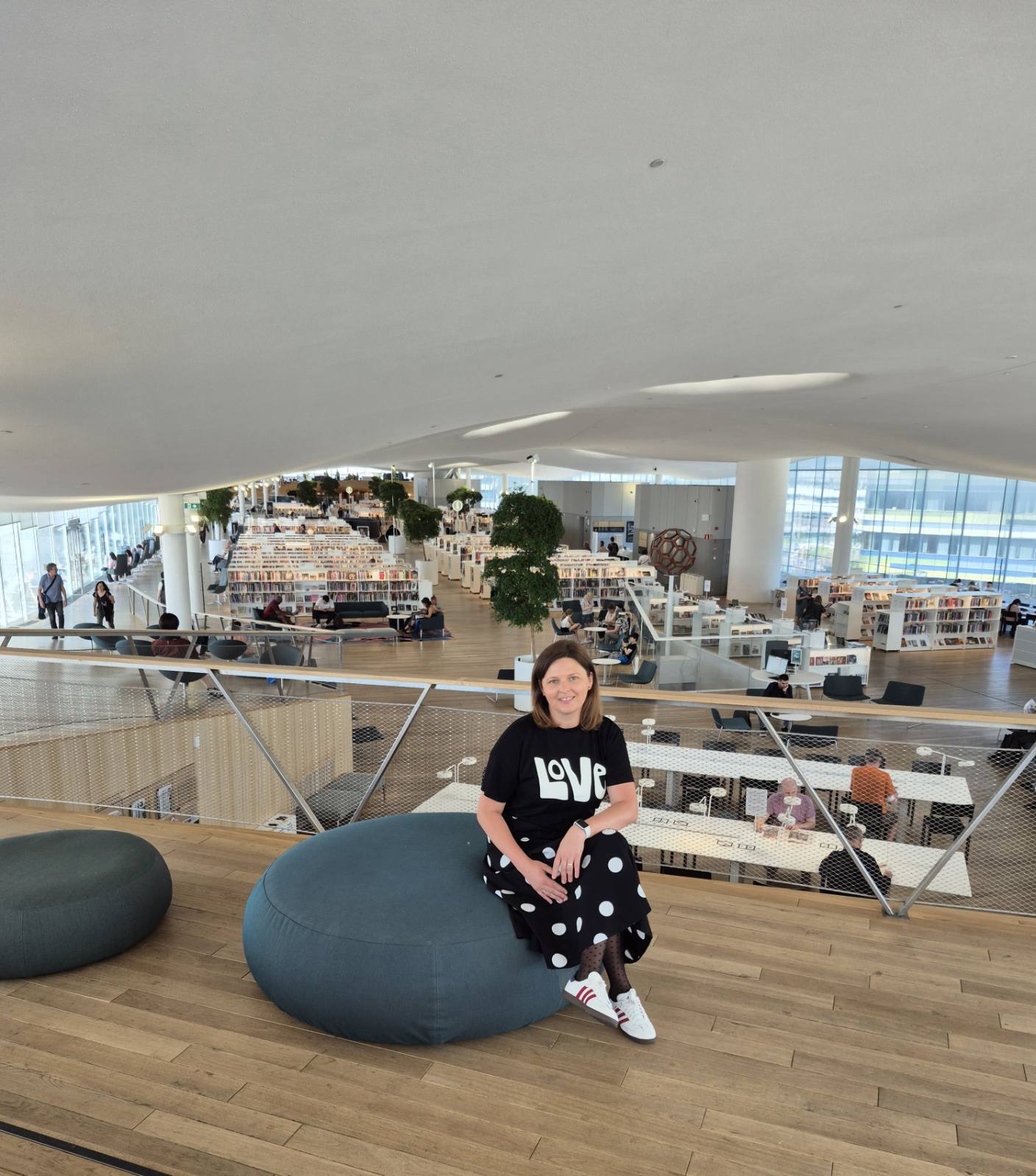 U sklopu programa, imala je priliku posjetiti, istražiti i upoznati sadržaje poznate Oodi knjižnice, često nazivanu najzabavnijom knjižnicom na svijetu. Osim klasičnog prostora za čitanje i održavanje koncerata, knjižnica nudi tečajeve kuhanja, radionice, 3D printere, šivaće mašine i mnoge druge aktivnosti. U tom inspirativnom prostoru, nastavnica je zajedno s ostalim sudionicima tečaja isprobala i AI alat za timski rad.