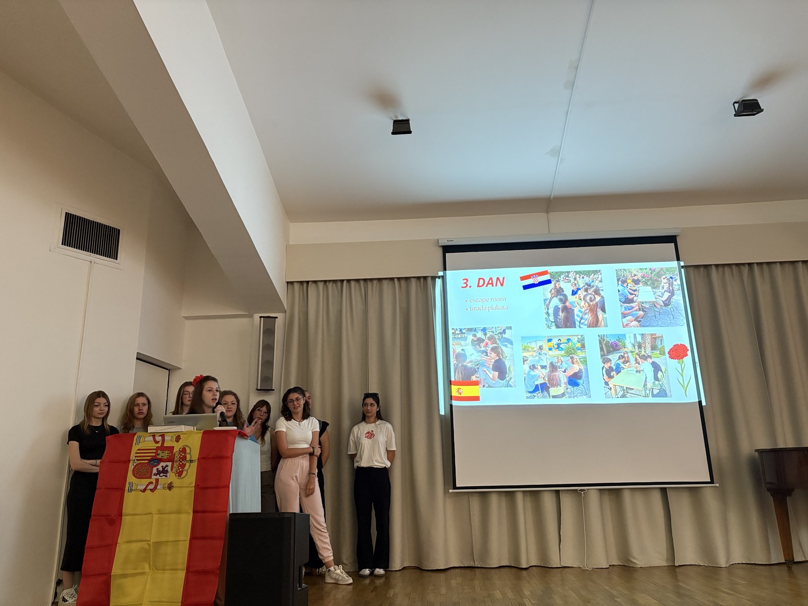 Učenici koji su sudjelovali u grupnoj mobilnosti u sklopu Erasmus+ akreditiranog projekta u području odgoja i općeg obrazovanja broj 2024‑1‑HR01‑KA121‑SCH‑000216456 održali su prezentaciju za ostale učenike i djelatnike Škole, tijekom koje su podijelili svoja iskustva s mobilnosti u Sevilli, realizirane u periodu od 2. do 9. lipnja 2025. godine.