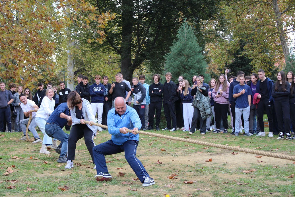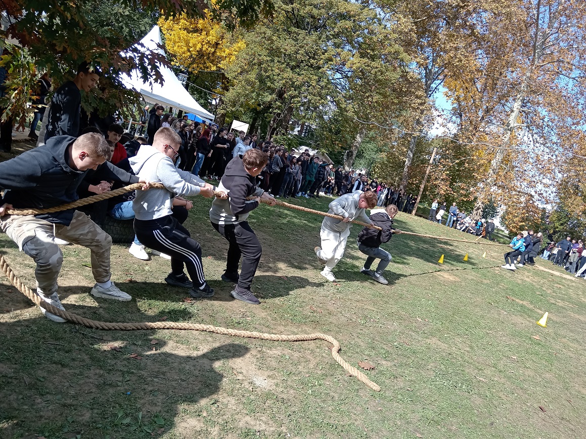 Uz to, održana je i tradicionalna kestenijada, a pravi duh zajedništva i natjecateljskog duha zavladao je tijekom tradicionalnih seoskih igara – vožnje tački, skakanja u vrećama, kotrljanja guma i potezanja užeta. U svim sportskim aktivnostima učenicima su se pridružili i djelatnici škole, čime su dodatno naglasili važnost međusobne suradnje i timskog duha.