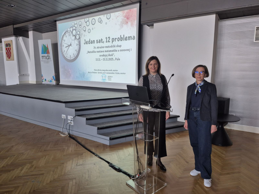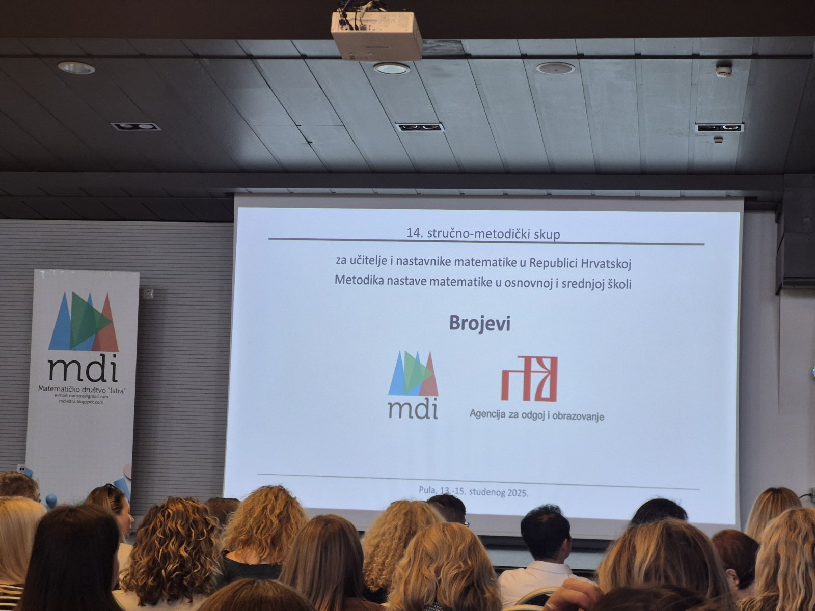 U razdoblju od 13. do 15. studenog 2025., nastavnice matematike iz naše škole, Petra Hiržin i Marica Dolenec-Jurinić, sudjelovale su u Puli na 14. stručno-metodičkom skupu „Metodika nastave matematike u osnovnoj i srednjoj školi“ s temom „Brojevi“.