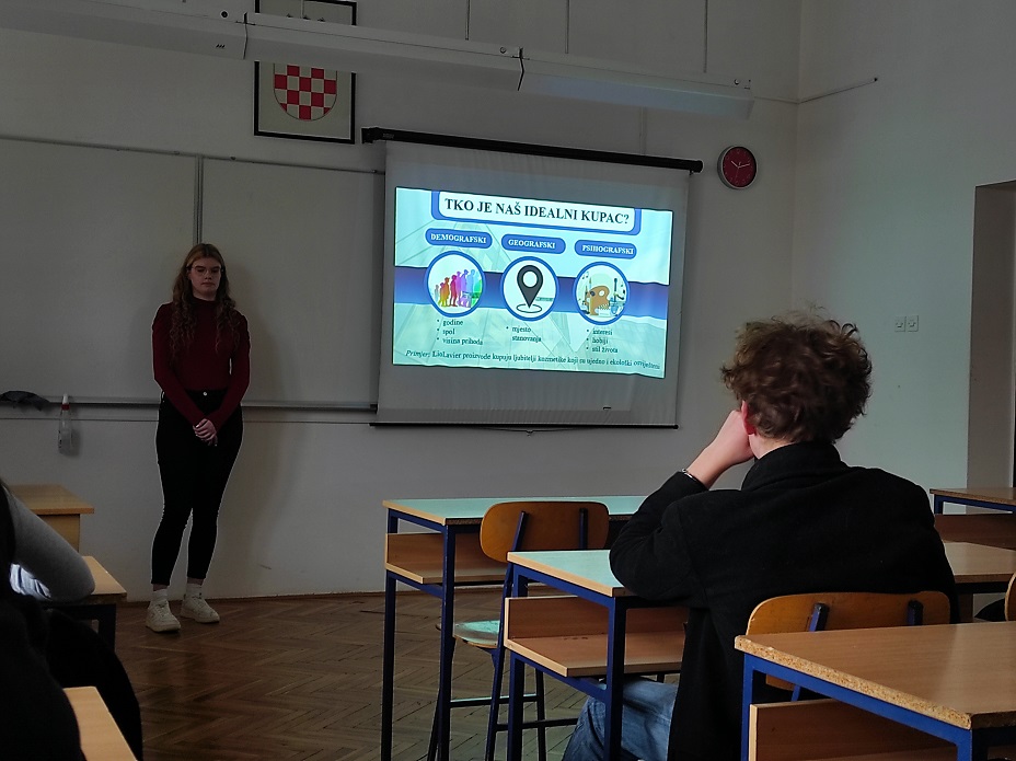 Učenice obrazovnog smjera Ekonomist, Stela Fogec i Melanija Dubovečak, održale su predavanje na temu Marketing plan i pripremile radionicu za učenike koja im je omogućila razvoj marketinških znanja i vještina, važnog područja ekonomije.