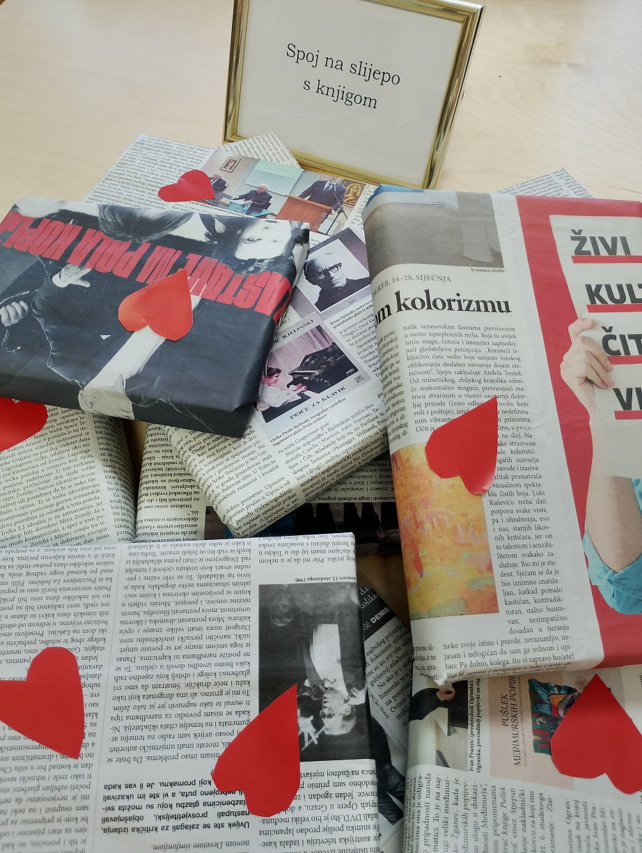 Tijekom cijelog tjedna školska knjižnica ponudila je učenicima zanimljivu aktivnost – „spoj na slijepo s knjigom“. Učenici su posuđivali tajanstveno zamotane knjige, ne znajući koji ih naslov čeka te su tako otkrivali nove književne svjetove i možda pronašli svoju novu omiljenu priču.