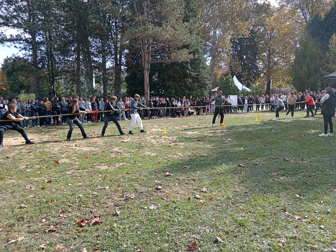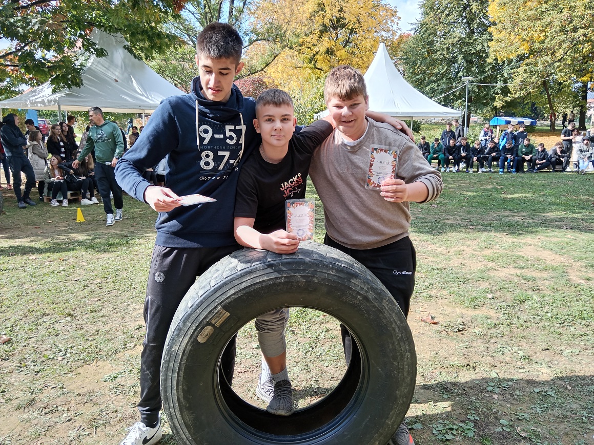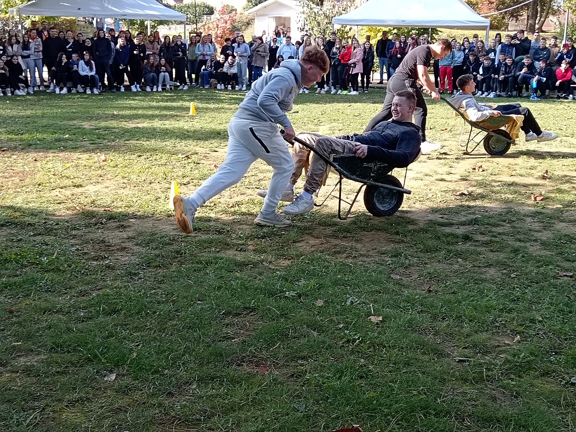 Uz to, održana je i tradicionalna kestenijada, a pravi duh zajedništva i natjecateljskog duha zavladao je tijekom tradicionalnih seoskih igara – vožnje tački, skakanja u vrećama, kotrljanja guma i potezanja užeta. U svim sportskim aktivnostima učenicima su se pridružili i djelatnici škole, čime su dodatno naglasili važnost međusobne suradnje i timskog duha.