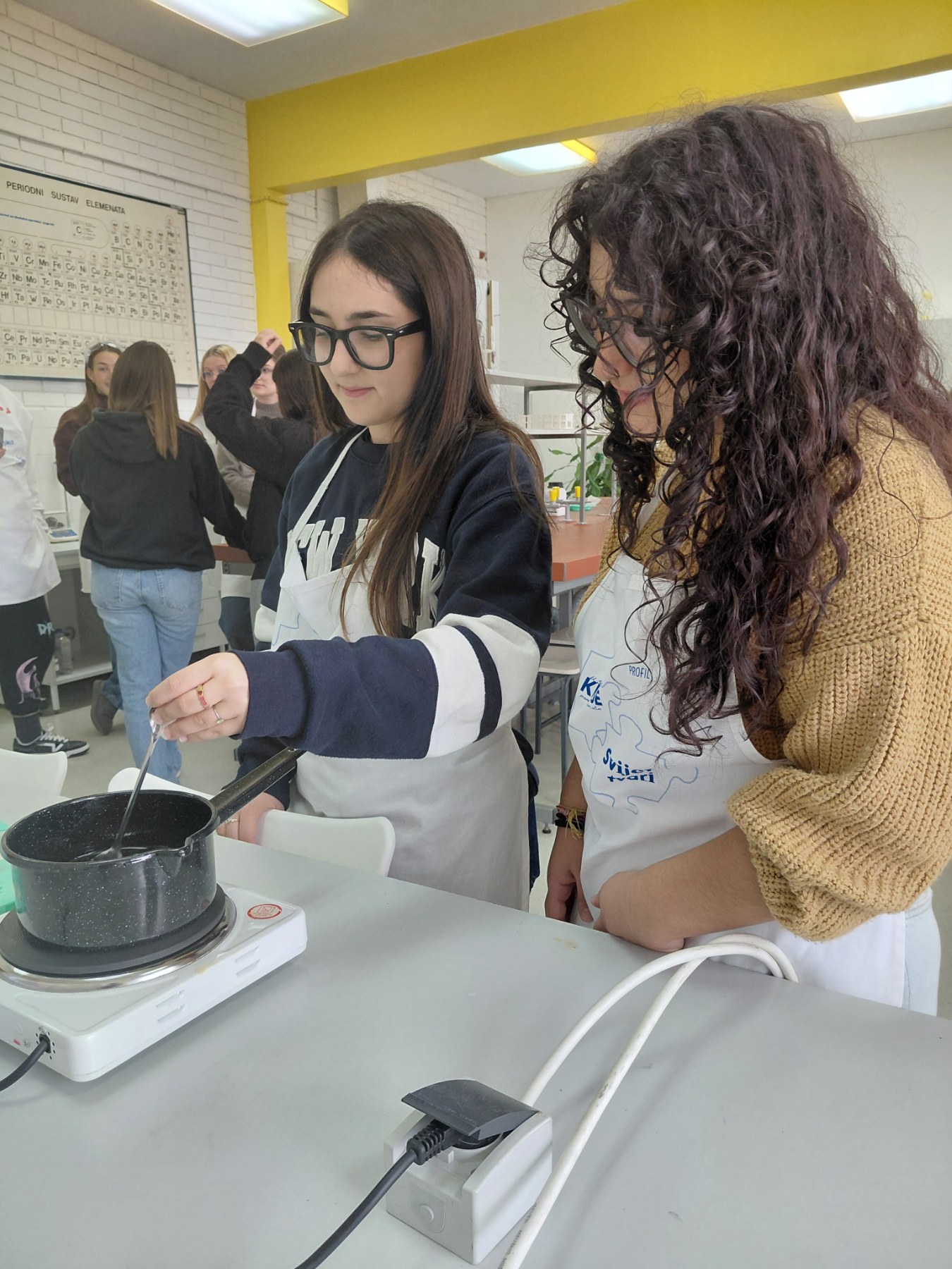 Naša profesorica kemije, Renata Vlaisavljević, osmisla je i poseban sat kemije, tijekom kojeg su učenice izrađivale "Coprničin sapun" – proizvod koji nosi oznaku certificiranog suvenira Varaždinske županije. Ova mala radionica spojila je znanost, tradiciju i kreativnost, a djevojke su kući ponijele vrijednu i lijepu uspomenu. Video ove čarobne radionice možete pogledati na ovoj poveznici. U slobodno vrijeme neke od učenica sudjelovale su i u poduci izrade lepoglavske čipke, čime su upoznale još jednu važnu i jedinstvenu kulturnu tradiciju našega kraja.