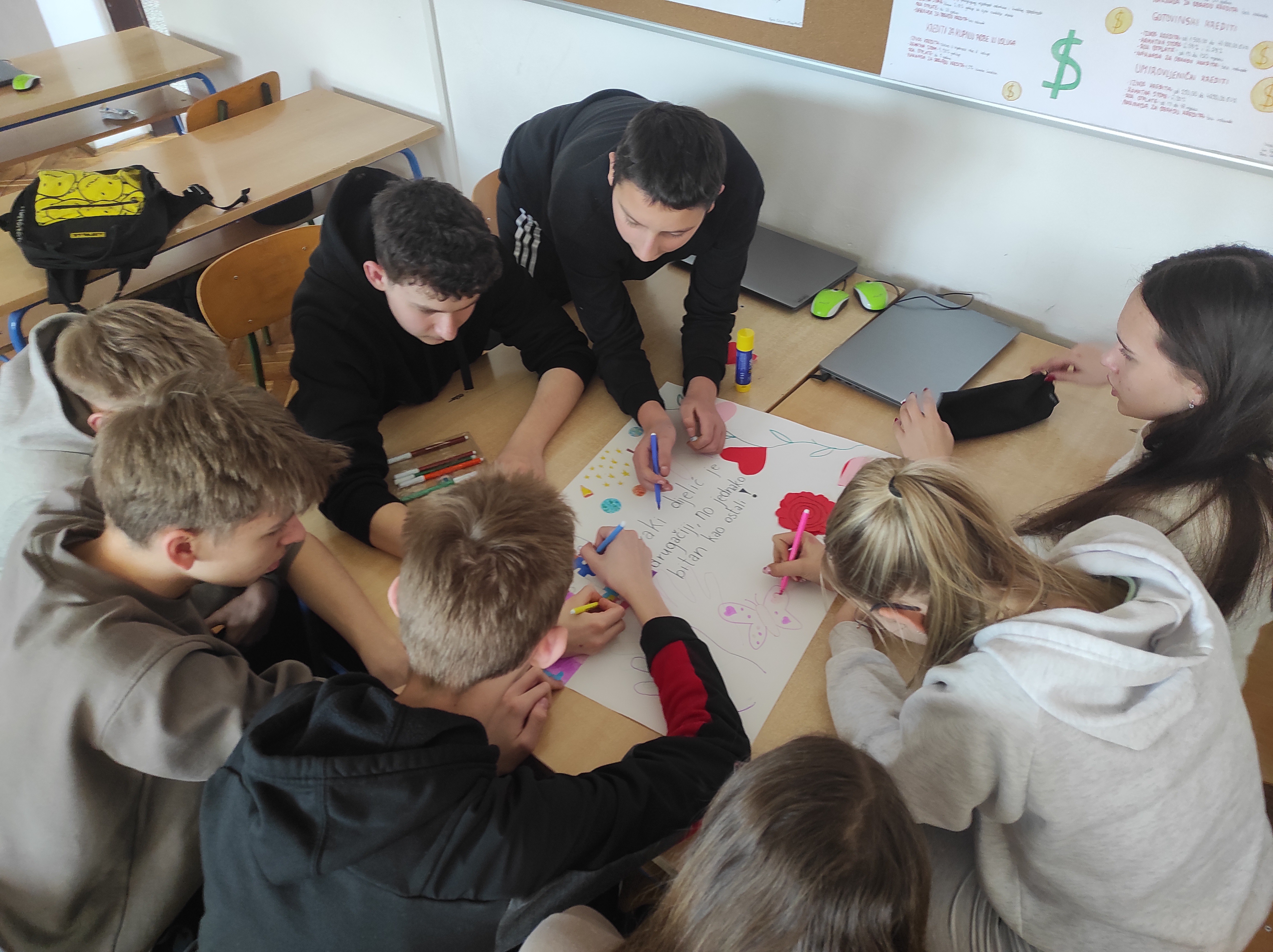 Iako rijetke bolesti nisu svakodnevna pojava, ljubav, podrška i zajedništvo nemaju granica. Svojim aktivnostima učenici 1.E razreda pokazali su da stoje uz sve osobe koje žive s rijetkim bolestima. Nakon uvodnog razgovora o važnosti prihvaćanja različitosti i pružanja podrške onima kojima je najpotrebnija, učenici su krenuli sa svojim aktivnostima. Radeći u grupama izrađivali su plakate podrške razmjenjujući ideje i poticajne misli. Kroz zajednički rad razvijali su suradnju, empatiju i osjećaj zajedništva.