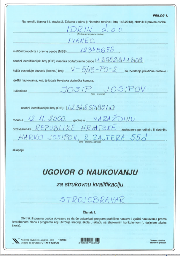 u privitcima donosimo primjere pravilno popunjenih ugovora za praktičnu nastavu.